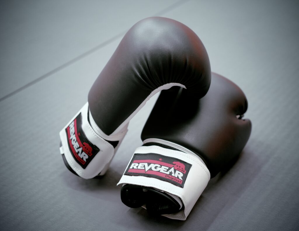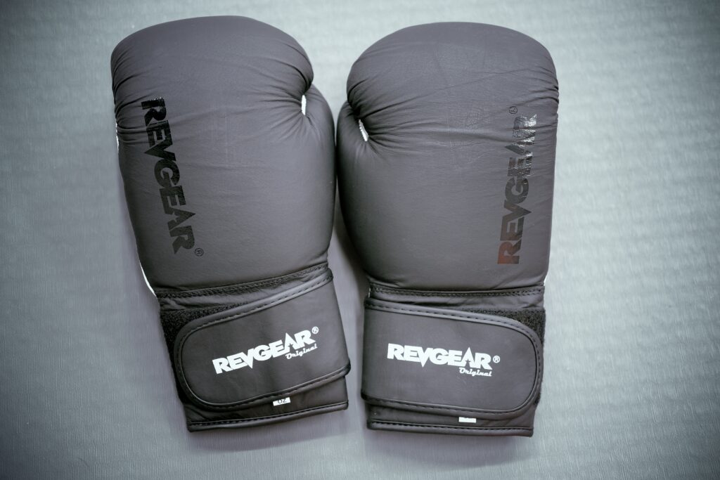 Gloves, shin guards, and a mouthguard (not pictured)